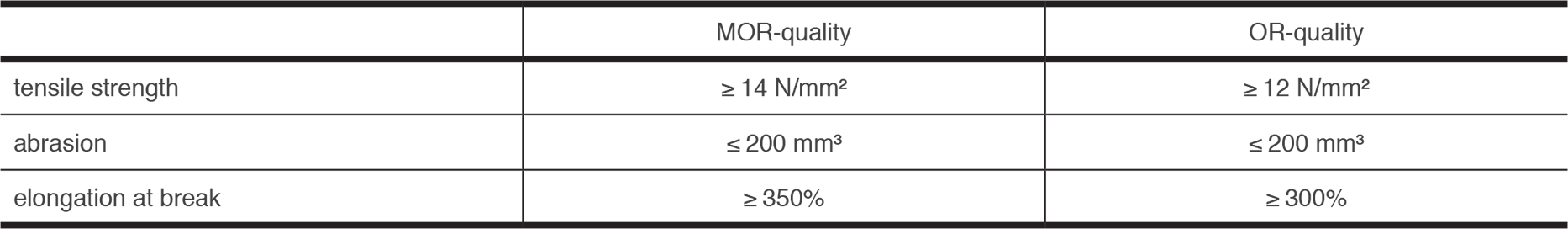 Grease, mineral oil and solvents may cause damages to normal textile conveyor belts. Even a short exposure to these substances may effect a swelling of the cover rubber. Therefore, Ambelt® offers oil resistant belts. The special rubber compound of the material reduces wear and increases the efficiency of the production. Ambelt‘s® product portfolio comprises the qualities MOR (medium oil resistant) and OR (oil resistant). The product specifications are also available in cross rigid XE-fabric.